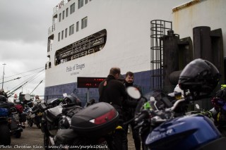 Um 15 Uhr machte ich mich auf den Weg zum Dock von P&O Ferries, ca. 20 km von der Innenstadt entfernt, das passte zeitlich auch ganz gut ohne das es all zu stressig wurde beim Boarding. Das war auch zugleich meine 2. Prämiere für den heutigen Tag, zum ersten Mal auf einer großen Fähre mit dem Motorrad, was habe ich mir Gedanken gemacht wie das alles funktioniert, auf was ich achten muss, usw, Glücklicherweise traf ich vor dem CheckIn eine Motorradgruppe aus Bayern die ich etwas ausfragen konnte und die nahmen mir ganz schnell die Angst vor dem Verzurren. Somit war es am Ende dann eigentlich ganz einfach. Ein Spanngurt über den Sitz, Ständer mit dem Vorderrad abgespannt, Handbremse arretiert und fertig ist das Ganze. Wenn morgen die Klappe in Hull wieder aufgeht bin ich mal gespannt ob mein Motorrad noch steht wo ich es abgestellt hatte oder ob ich es dann unter irgendeinem LKW suchen muss, ich hoffe nicht xD.