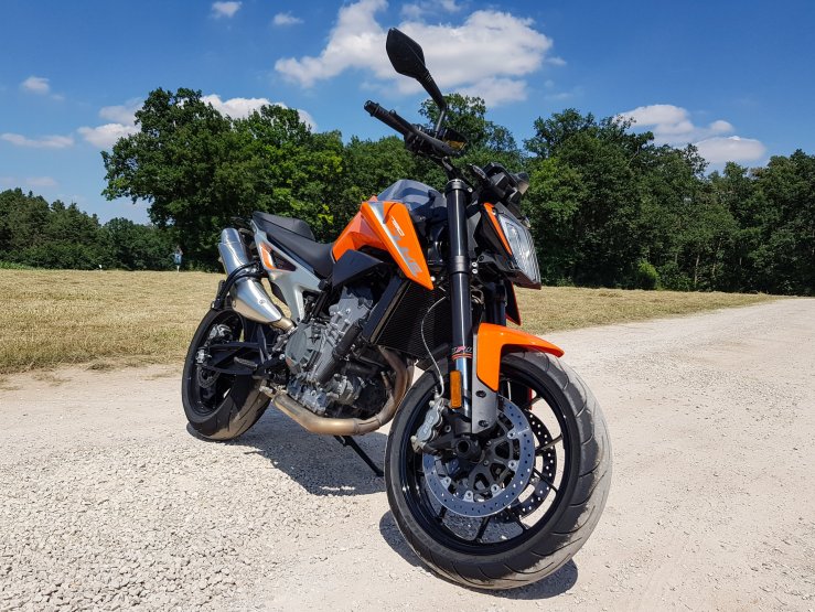 Scheinbar war dieser „Makel“ bei KTM bekannt und er ist beim aktuellen Modell tatsächlich verschwunden, man kann nun gediegen durch die Stadt rollen und ordentlich Spaß auf der Landstraße haben, das ganze in einem Paket von < 150 kg und mit 73 PS… schon brachial!